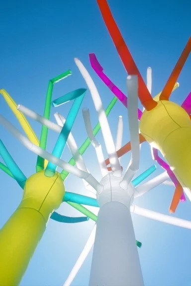Fly Guys® dancing inflatables made their debut in the 1996 Closing Ceremony of the Atlanta Olympic Games, when 60 foot humanoid figures magically sprung up and then danced as though they were in sync with the music. Since their dramatic debut, AirDD® has further developed the dancing inflatables, making them smaller and offering them as Dancing Billboards™ for advertising and branding purposes. AirDD® has also created such exciting dancers as the Air Flames™ and the Sky Ticklers™.