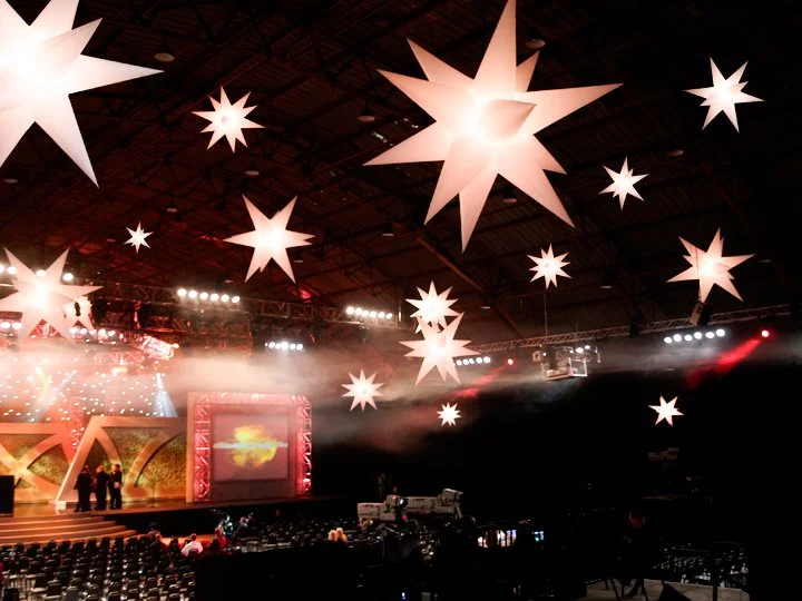 Transform your space into a starry night with our inflatable Stars with LED lights. Perfect as an accent to a contemporary environment or as the main décor for a holiday event. Use our inflatable Stars with LED lighting at night or day, for award ceremonies, gala events, dance parties, or any event that needs a touch of glamour. Our inflatable Star with light is beautiful in white or with colored lighting to fit any celebration. Combine different designs of our inflatable Stars to add depth an richness to a starry sky design.